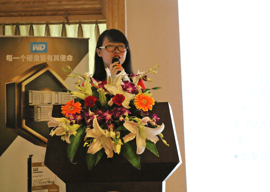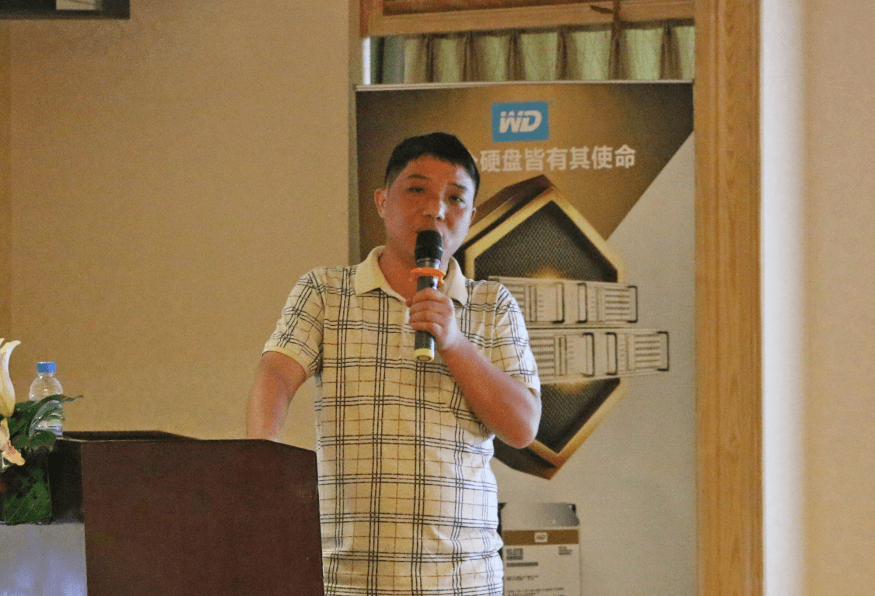 西部数据产品经理梁小毅先生介绍了西部数据硬盘的金盘、红盘等产品,表示此类产品可以满足NAS存储的容量需求,保护用户的数据安全。同时分析了当前的硬盘市场形势和行业趋势,从而有效地帮助客户实行渠道的布局。
